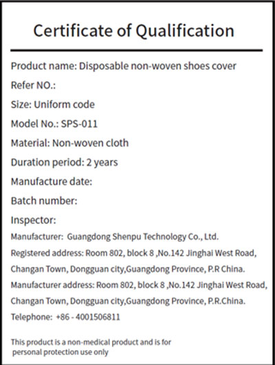 3.DisposableNon austi apavu CoverrParameter specifikācijas
